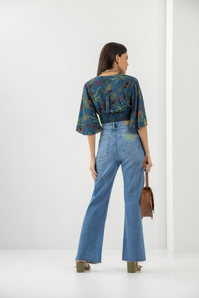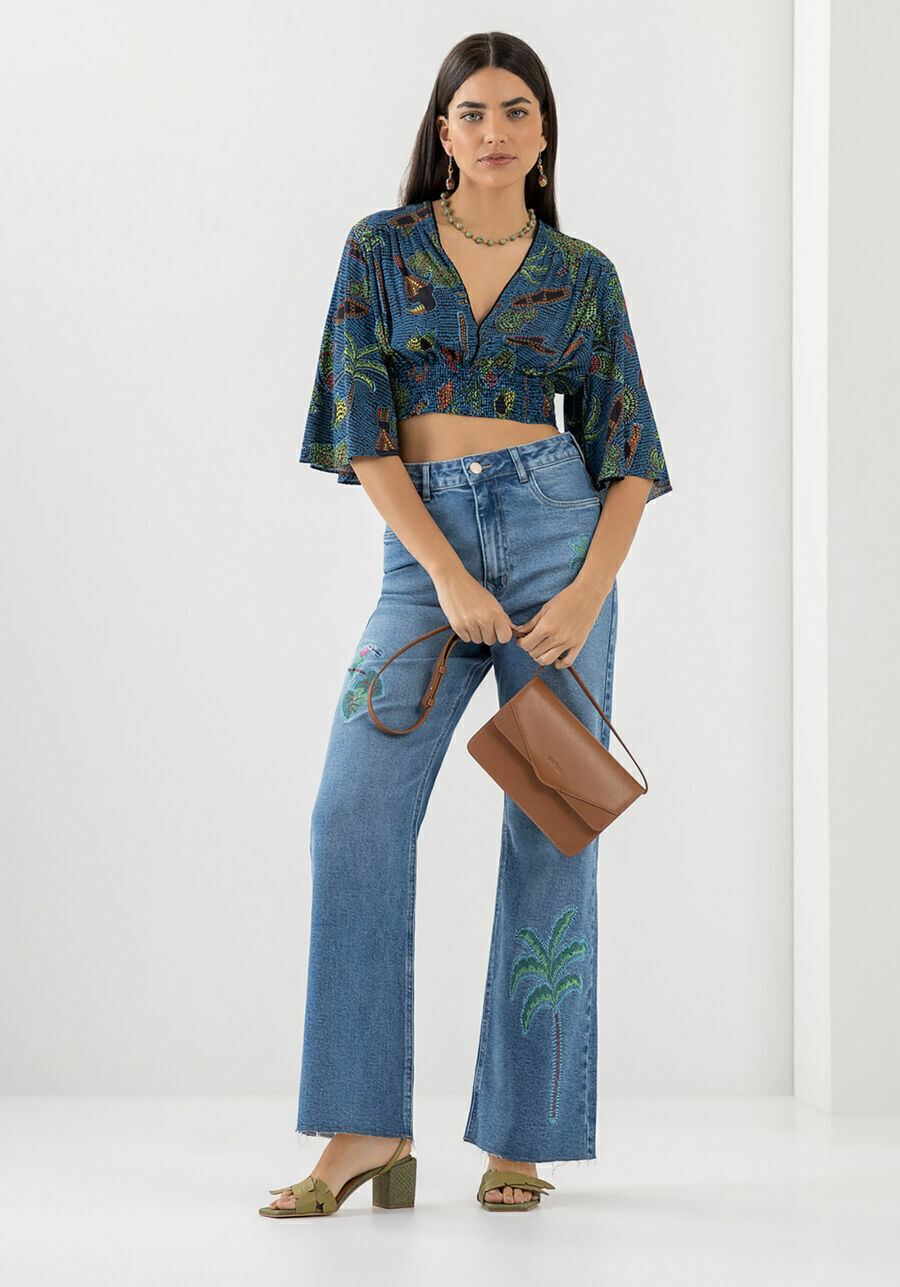 Leveza e sofisticação são destaque nessa blusa cropped. As mangas flare exalam muito movimento através da viscose, além da estampa inspirada nas florestas brasileiras. Os botões internos no decote permitem que você ajuste a modelagem, podendo deixar o modelo com decote mais profundo e, assim, trazer mais sensualidade ao visual.
