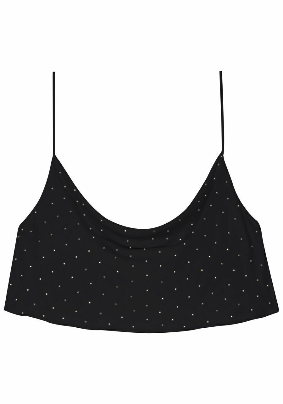 Um toque de sofisticação e modernidade define essa blusa cropped Lez a Lez. Seu caimento fluido destaca a beleza do decote degagê que é completado pelas alças com amarração. Os strass em toda a peça conferem um brilho especial para combinar com saias na mesma proposta ou até mesmo com jeans, criando looks cheios de personalidade.