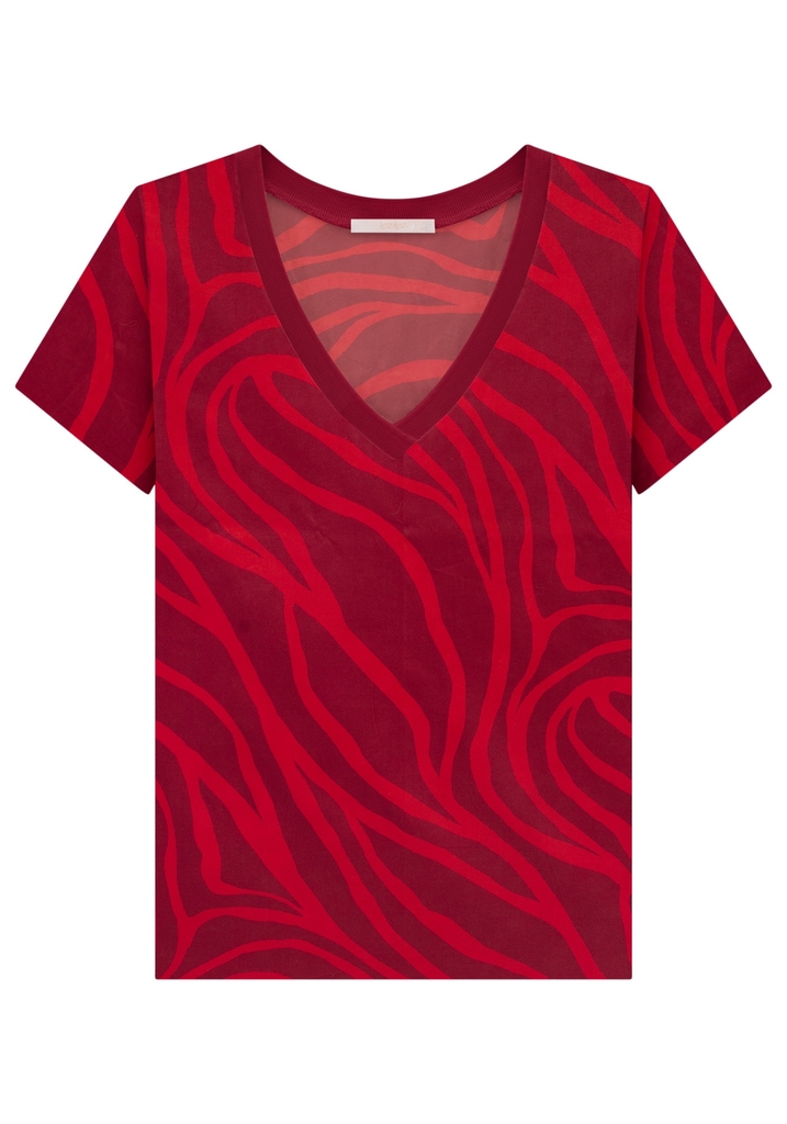 Básica com essência leve, essa blusa é feita em malha muito leve e confortável. Traz estampa exclusiva inspirada na Islândia e decote V com retilínea que evidencia o colo. Uma peça que compõe um mix interessante com saia midi estampada, ou proposta despojada com jeans.