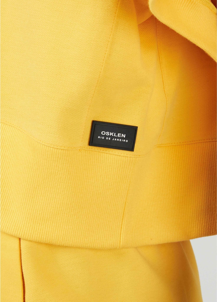 Blusa feminina feita em moletom felpado de algodão e poliéster. A peça tem mangas curtas e comprimento curto. Ela tem caimento ligeiramente over. A peça tem uma etiqueta de assinatura externa. Essa é uma peça Regenerate Life, pois foi produzida com algodão nacional certificado seguindo critérios minuciosos de redução dos impactos ambientais e sociais durante seu cultivo. Seu processo produtivo utiliza energia renovável, reduz o consumo de água e fomenta as cadeias produtivas brasileiras. Essa peça também contém PET reciclado em sua composição. O Brasil descarta hoje seis bilhões de garrafas PET por ano, um material que leva cerca de 300 anos para se decompor. A sua reutilização evita o descarte inapropriado, reduzindo o aumento da poluição no planeta. Composição: 50% algodão certificado 50% poliéster PET.
