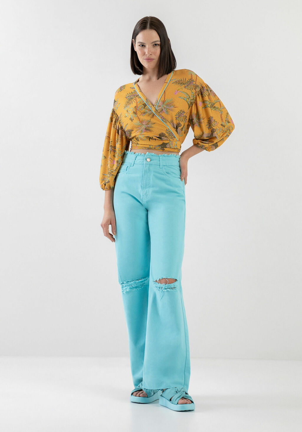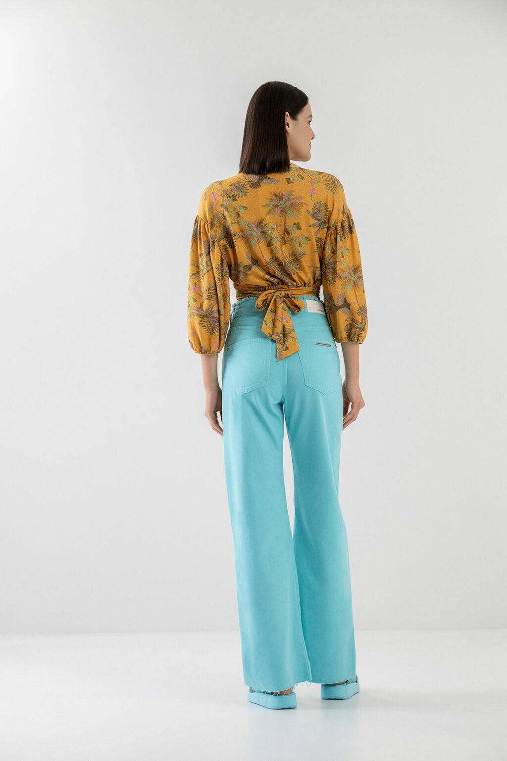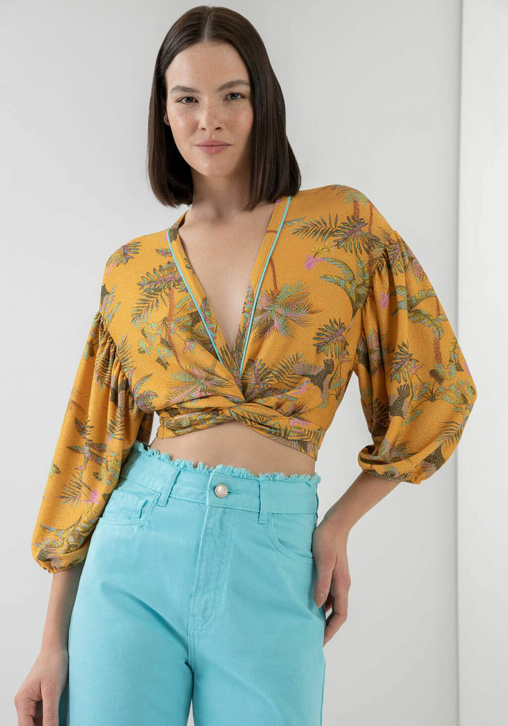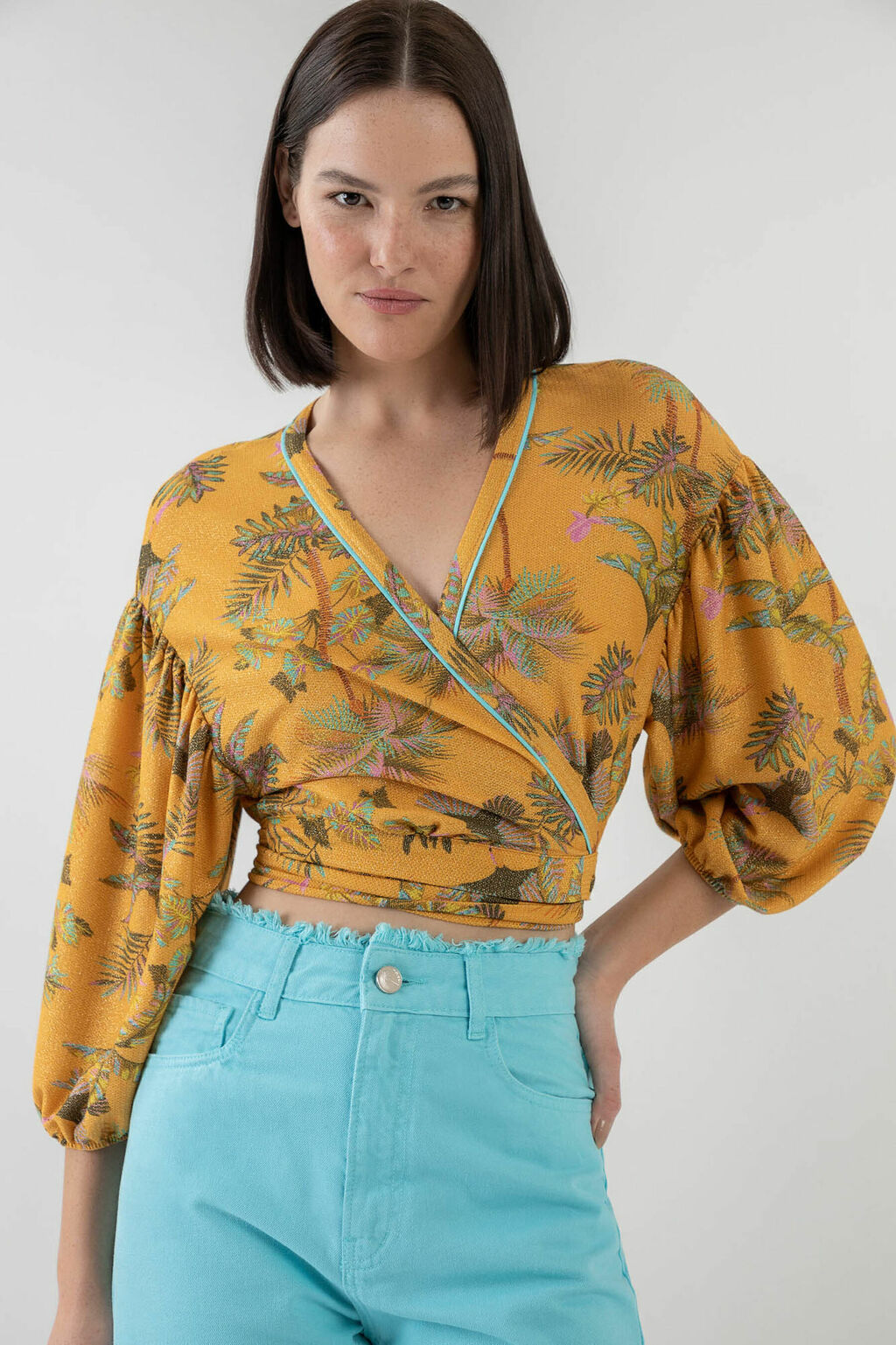 Com a leveza de uma brisa em meio à natureza, essa blusa transpassada traz a inspiração das florestas brasileiras em cada detalhe de sua estampa. Feita em malha com um suave brilho, ela envolve o visual com singularidade. Combine com peças de alfaiataria para um look sofisticado ou com jeans para um estilo mais casual.