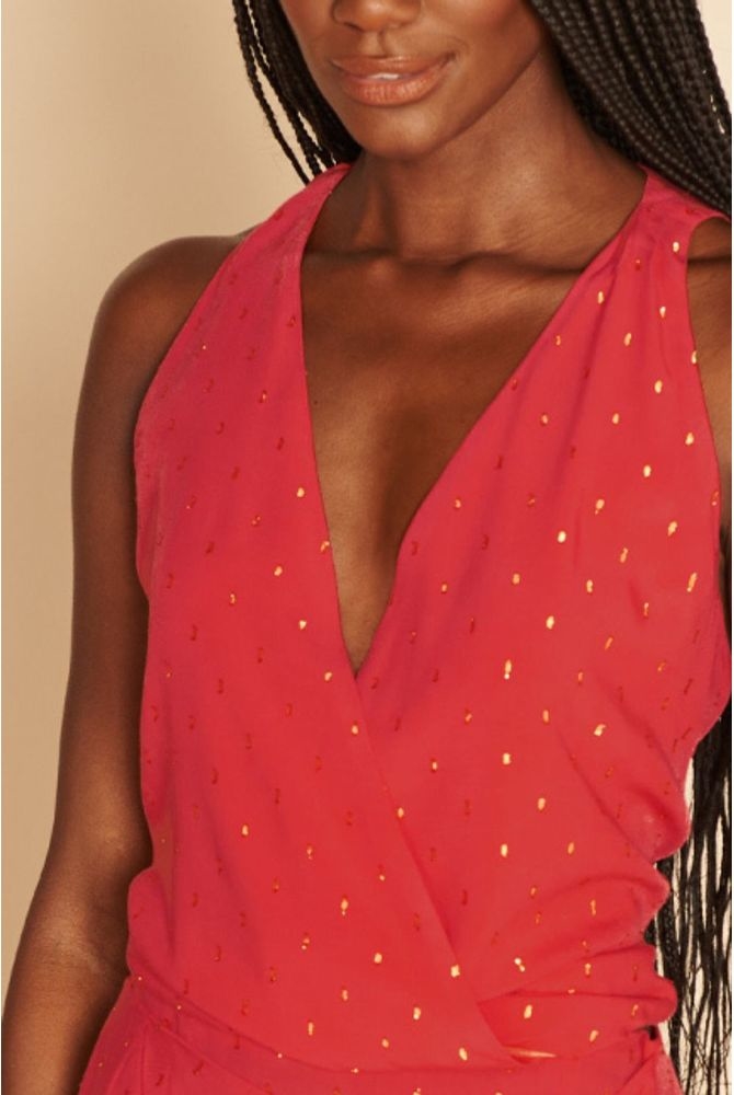 Por isso, a Blusa Transpassada com Brilhos na cor Vermelha, é perfeita para as festas de final de ano. A Blusa tem decote V, alças largas e shape soltinho, o que traz mais conforto para sua produção. Você pode apostar em um look moderno usando com a saia do mesmo material ou combinando com outras shorts, calças e saias da coleção.