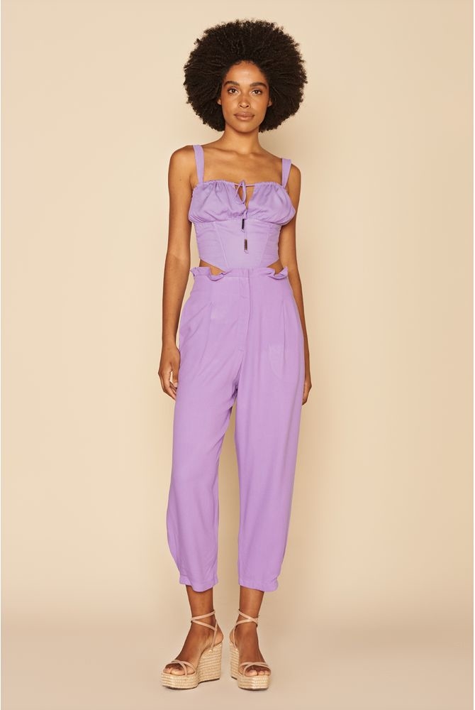 Pensando nisso, a Calça possui pregas frontais e babados no cós, que dão um toque moderno à peça. Além disso, ela pode ser combinada com cropped para um conjunto confortável e sofisticado.