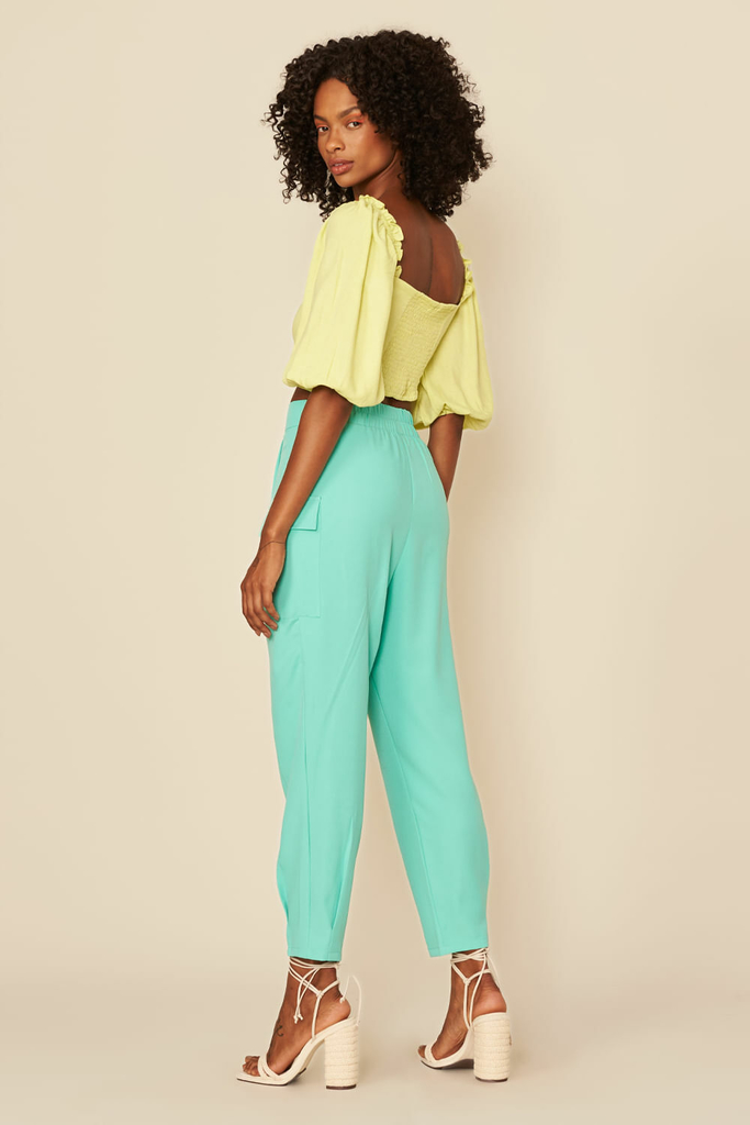 Além disso, essa Calça em Crepe, é uma aposta cool e despojada para compor os looks de verão. Ela possui pregas frontais, estilo cargo s e elástico no cós.