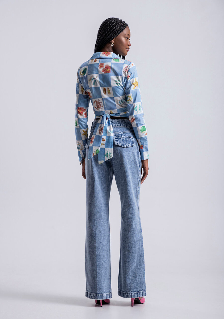 Através de um shape confortável e moderno, a calça reta em jeans é a escolha certa para quem busca elegância. Com bolsos funcionais na parte da frente, a peça possui alguns bolsos decorativos que trazem um toque atemporal aos looks.