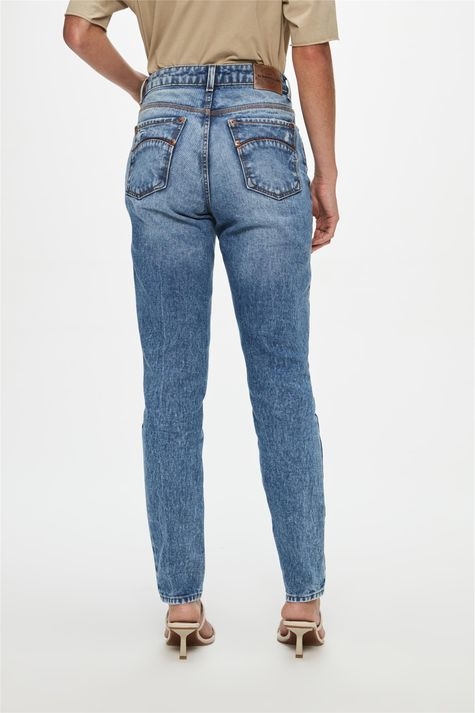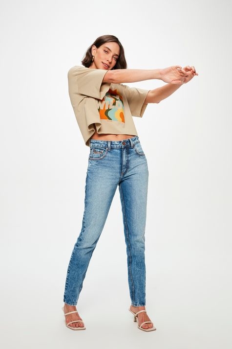 A calça feminina mom G5C1 é confeccionada em jeans 100% algodão BCI (A certificação BCI A Better Cotton Initiative é uma ONG que reúne produtores e demais áreas envolvidas para garantir uma cadeia sustentável na produção do algodão.) por isso tem um caimento estruturado e moderno. A peça passa por uma série de processos de amaciamento e tingimentos sustentáveis que garantem economia de água durante o processo de produção.