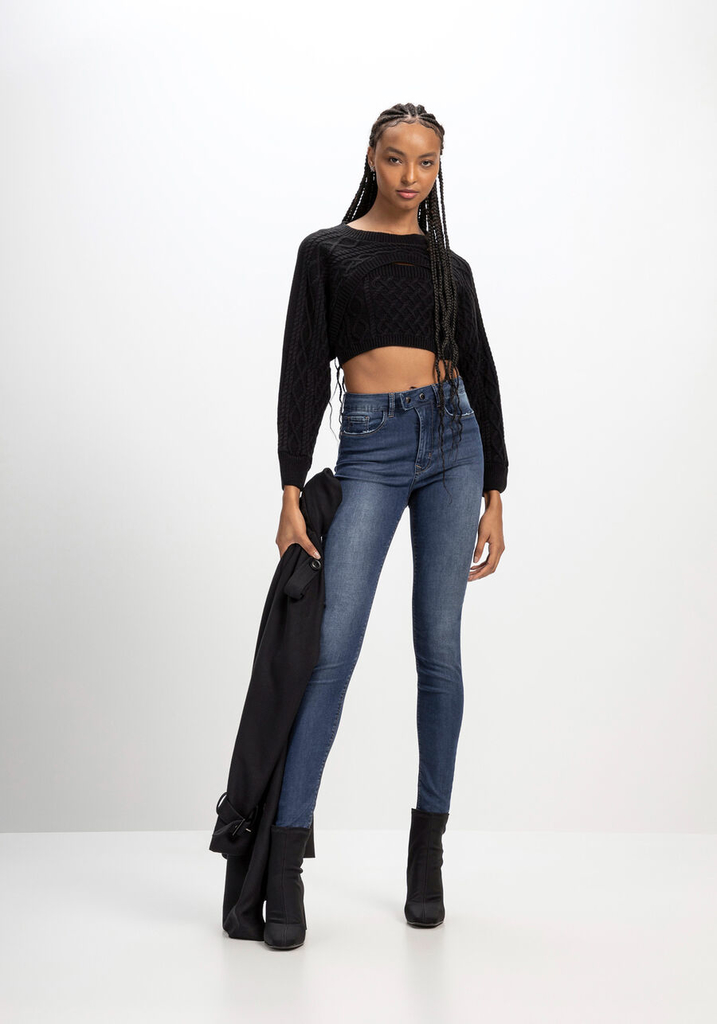 Clássica que transita entre todas as ocasiões, essa calça jeans skinny proporciona conforto e caimento perfeito através de muita elasticidade. O tingimento escuro é o que garante mais elegância ao visual, compondo um visual único com tricô.