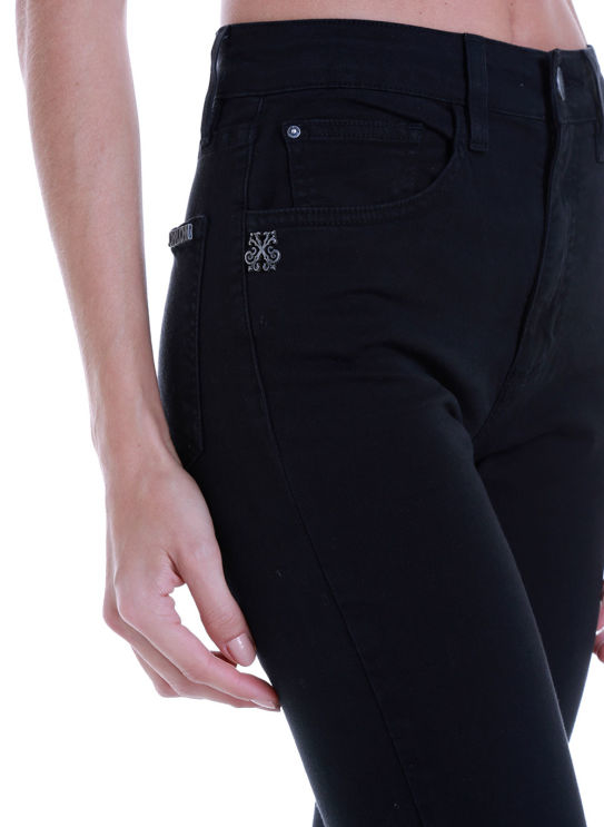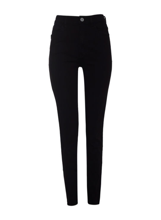 A Calça é confeccionada em sarja com modelagem skinny, tem o fechamento por zíper e botão, possui bolsos e passante no cós.