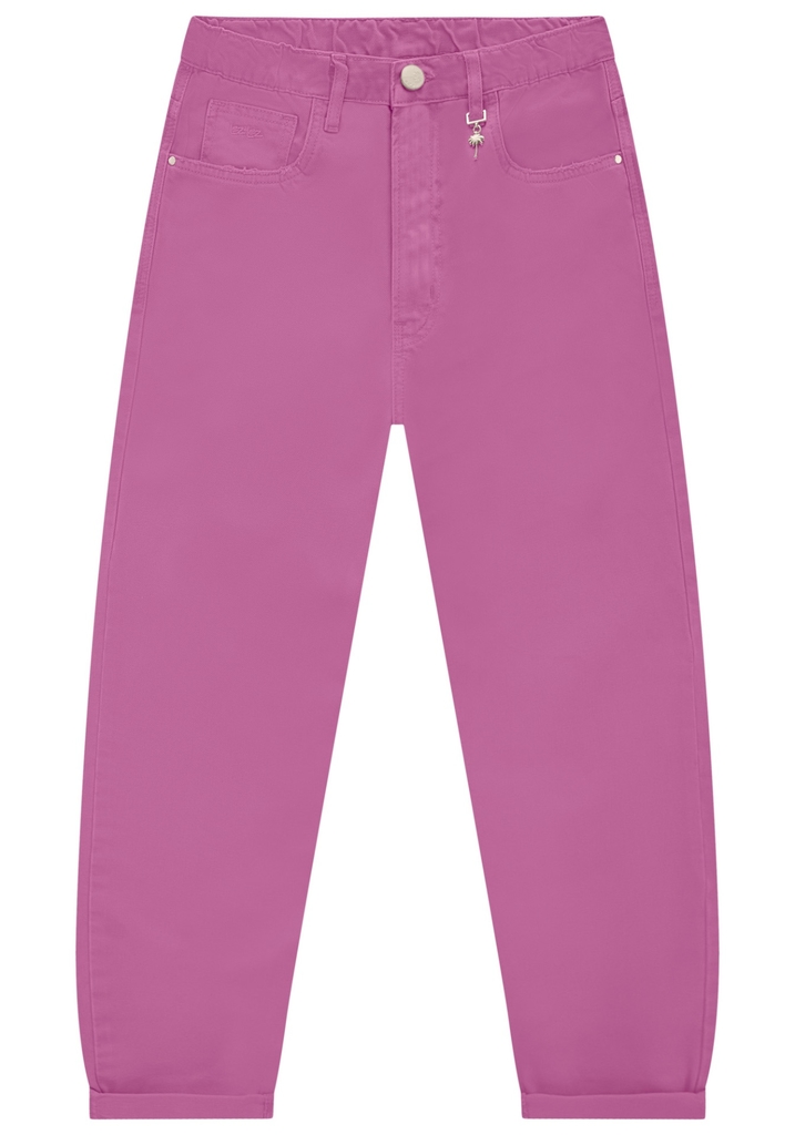 Calça mom em Sarja com a cor que é tendência na estação e um toque da essência Lez a Lez no detalhe em pingente. Uma peça leve que transita da praia à cidade, combinando com tops de amarração ou camisas de alfaiataria.