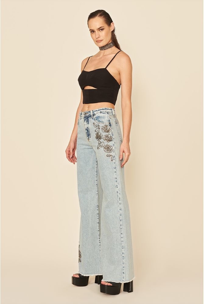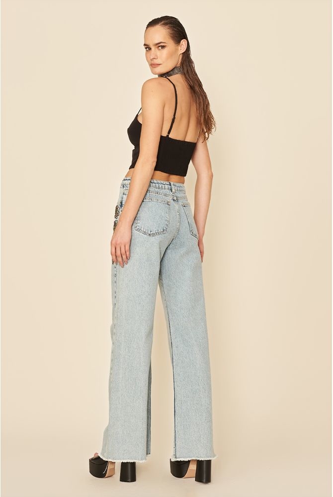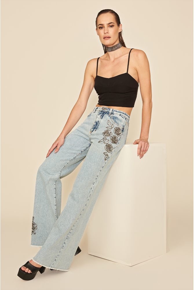 Calça Jeans Bordada, Wide leg A calça jeans bordada da My Place foi fabricada com a mais alta tecnologia têxtil, pensando em como te deixar estilosa e por dentro das tendências. Além disso, a calça jeans, modelo wide leg, conta com bolsos laterais e frontais, fechamento por zíper e botão e bordado, deixando a peça ainda mais fashionista e ideal para ocasiões especiais. O que você precisa saber: Cor: Jeans Tamanho:34,36,38,40,42,44 Medidas da modelo: PP/36 Altura: 1.77 Busto: 86 Cintura: 60 Quadril: 89 Coleção: Verão 23 Combina com: Cropped Preto (referência: 0667001) *A tonalidade das cores pode variar de acordo com a sua tela/monitor