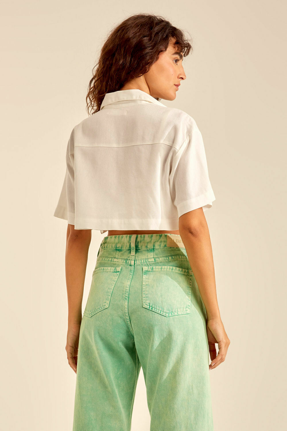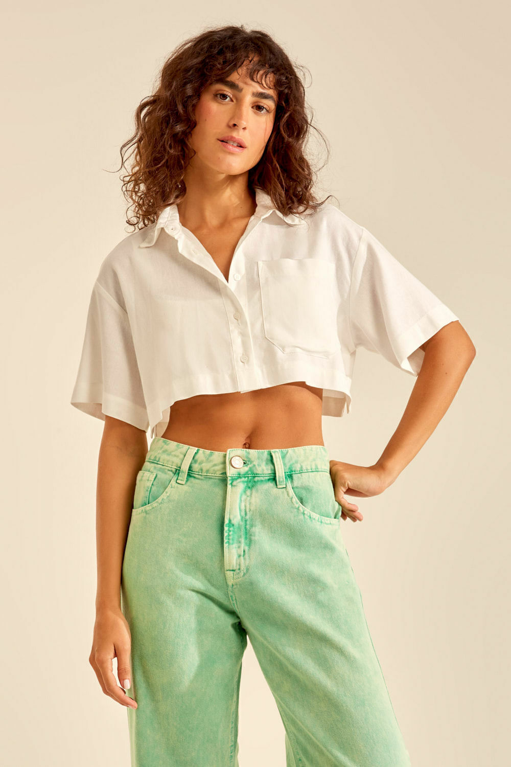 Versátil e ideal para os dias de verão, a Camisa Linho Bolso apresenta comprimento cropped, gola de camisaria, mangas curtas, botões para fechamento frontal e shape solto. Aproveite para combinar com peças e acessórios da coleção!