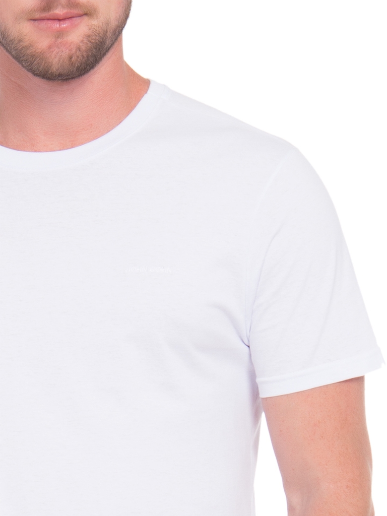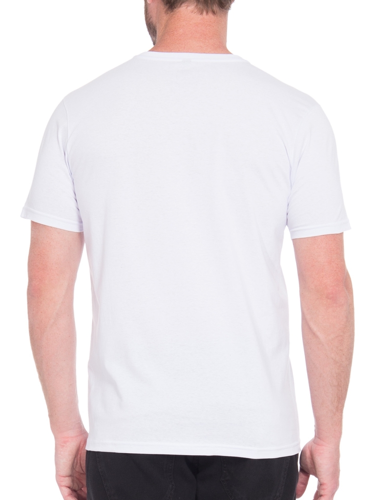 t-shirt preta é confeccionada em malha de algodão. A peça possui gola careca com acabamento canelado, mangas curtas, estampa  em cor contrastante na parte frontal e posterior, shape solto, caimento reto e acabamento pespontado.
