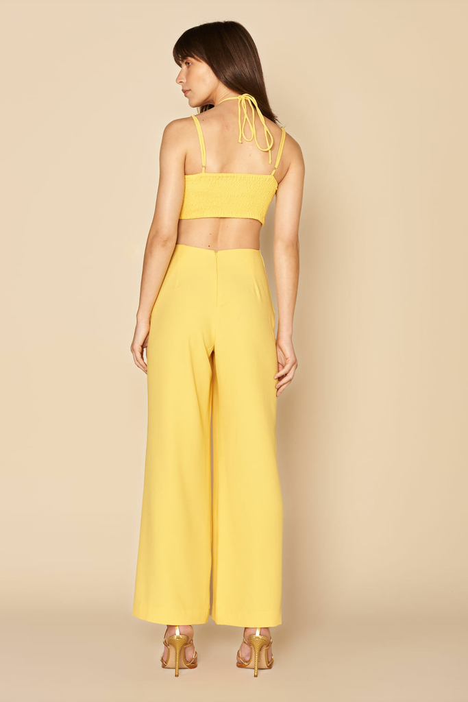 Este Macaquinho de linho na cor Sol é uma peça-chave por ser única, é prática e confortável. Conta com alças finas ajustáveis, bolsos e fechamento por zíper.