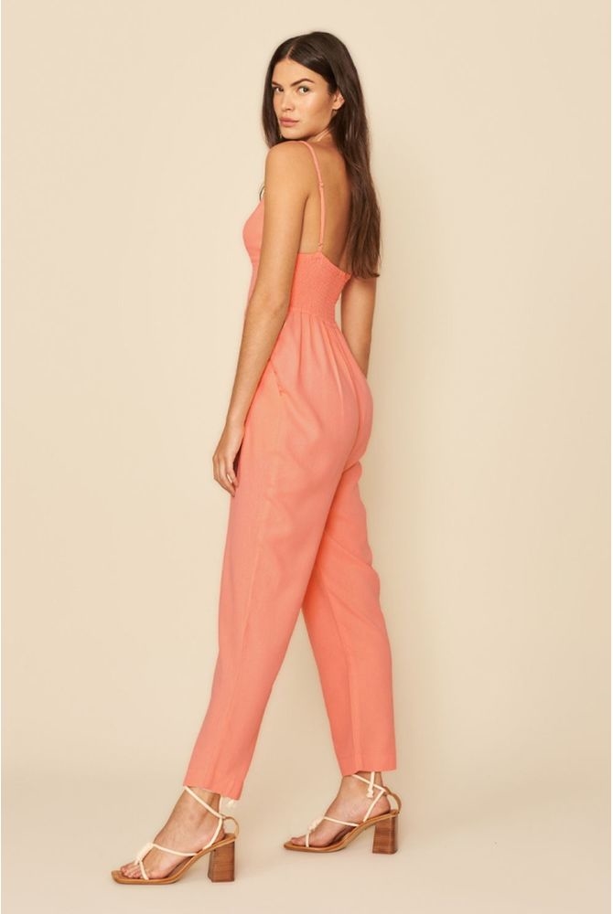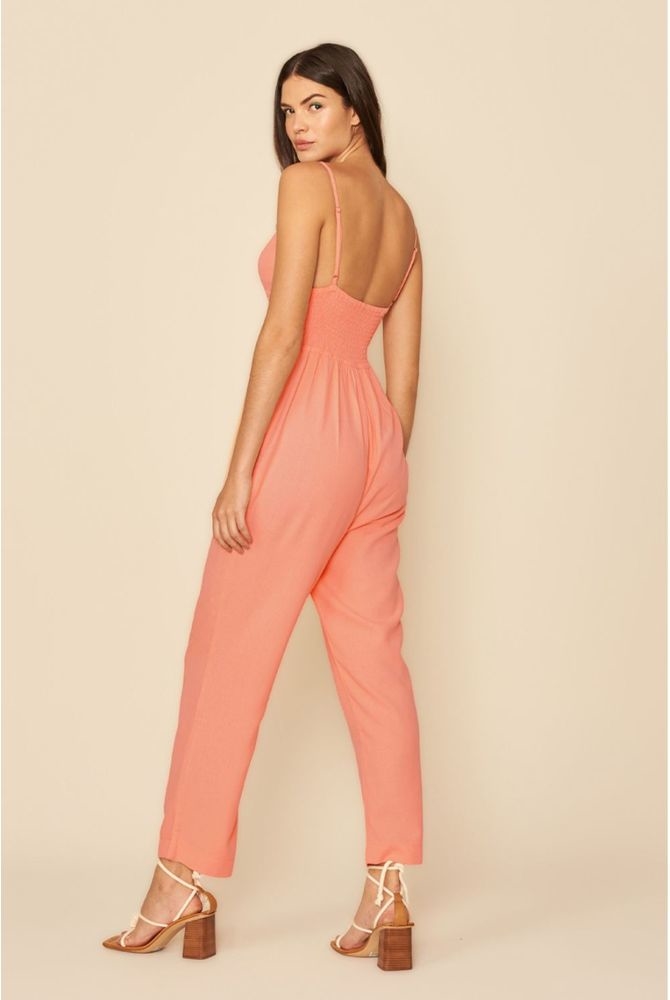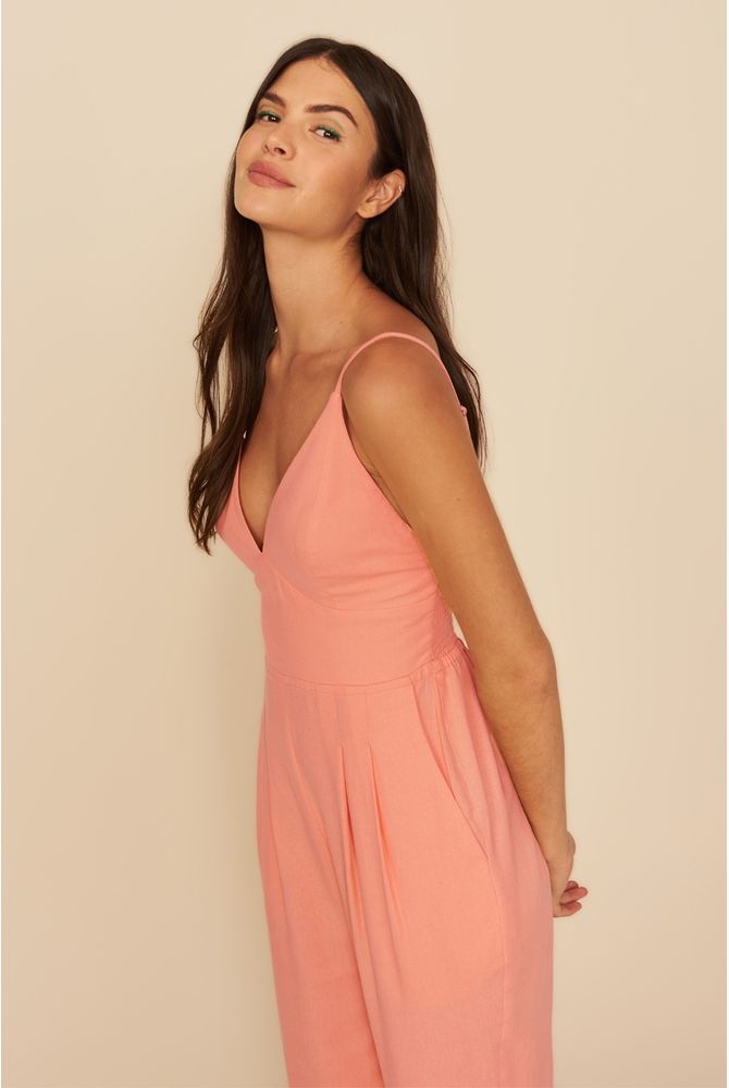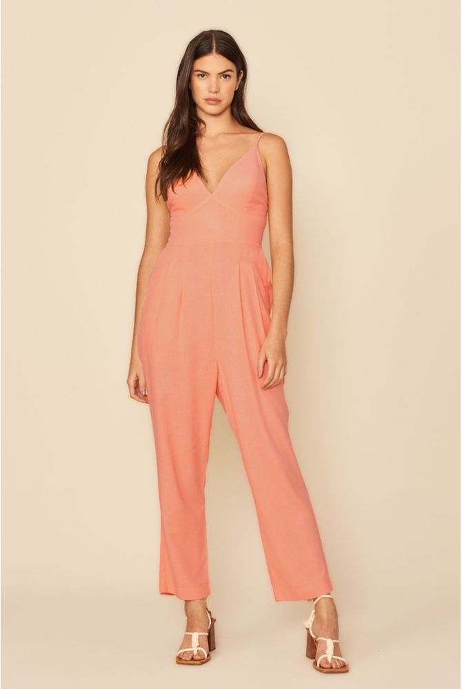 Macacão com decote em V, acenturado, alças finas e lastex nas costas. Peça para voce arrasar em todas as ocasiões.