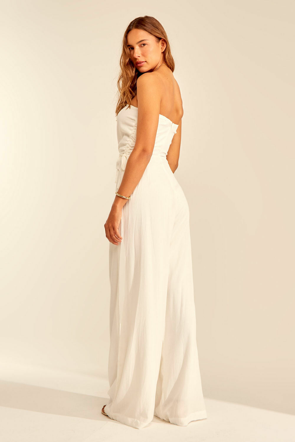 Elegante e ideal para diversas ocasiões, o Macacão Tecido Puxador Lateral é confeccionado em viscose leve e apresenta comprimento longo com barra ampla, cintura marcada, decote quadrado sem alças, franzido lateral com amarração regulável e shape reto.