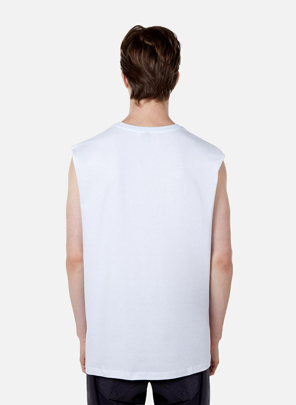 A Regata é confeccionada em malha, possui modelagem reta, decote redondo, estampa frontal, cavas alongadas e barra pespontada.