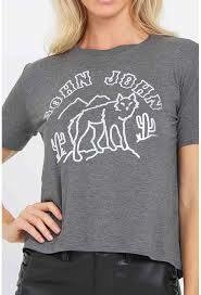 T-Shirt john john modelo t-shirts, decote careca, estampado , cor cinza, manga curta, tecido elastano e viscose. *as peças podem variar a estampa de acordo com o corte.