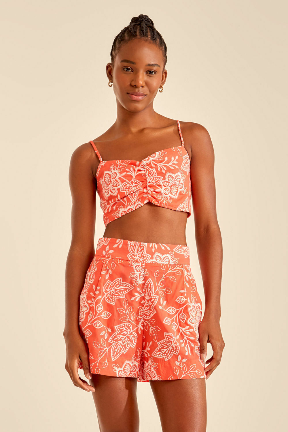 Elegante e ideal para diversas ocasiões, o Top Voil Bordado é confeccionado em algodão com desenhos que remetem a flora brasileira . A peça apresenta shape justo, alças, franzido frontal e lastex posterior. Aproveite para combinar com peças e acessórios da coleção!