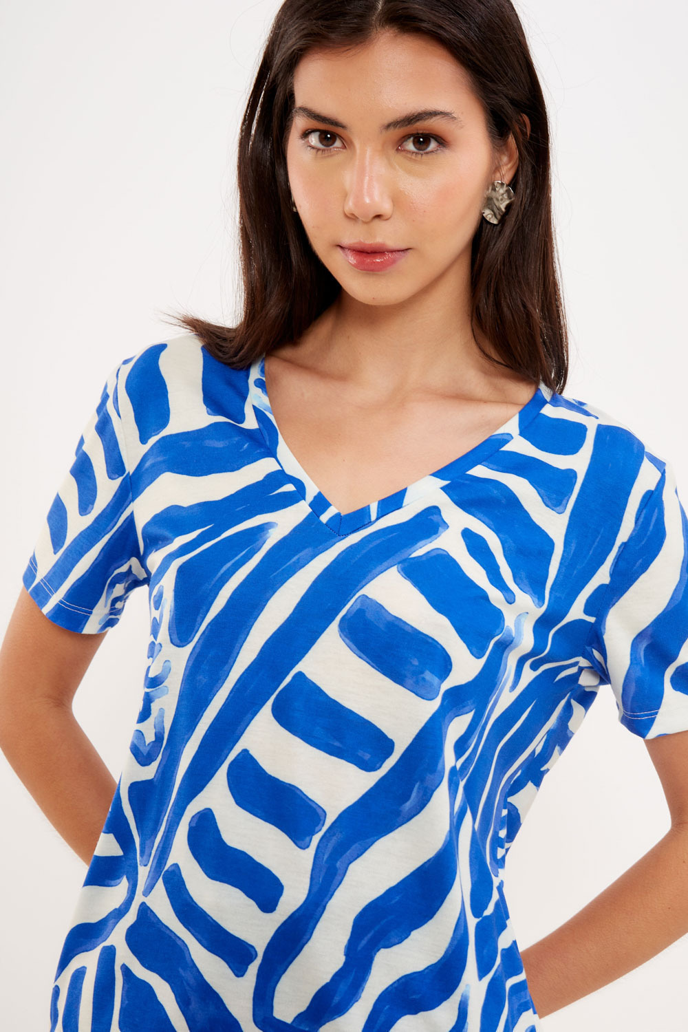 Com uma estampa exclusiva da Sacada, a T-shirt em Malha Estampa Laguna é perfeita para proporcionar conforto em diferentes ocasiões. Com um comprimento regular, essa peça possui um shape solto que se adapta ao corpo, além de mangas curtas e um decote em "V" que valoriza o colo feminino.