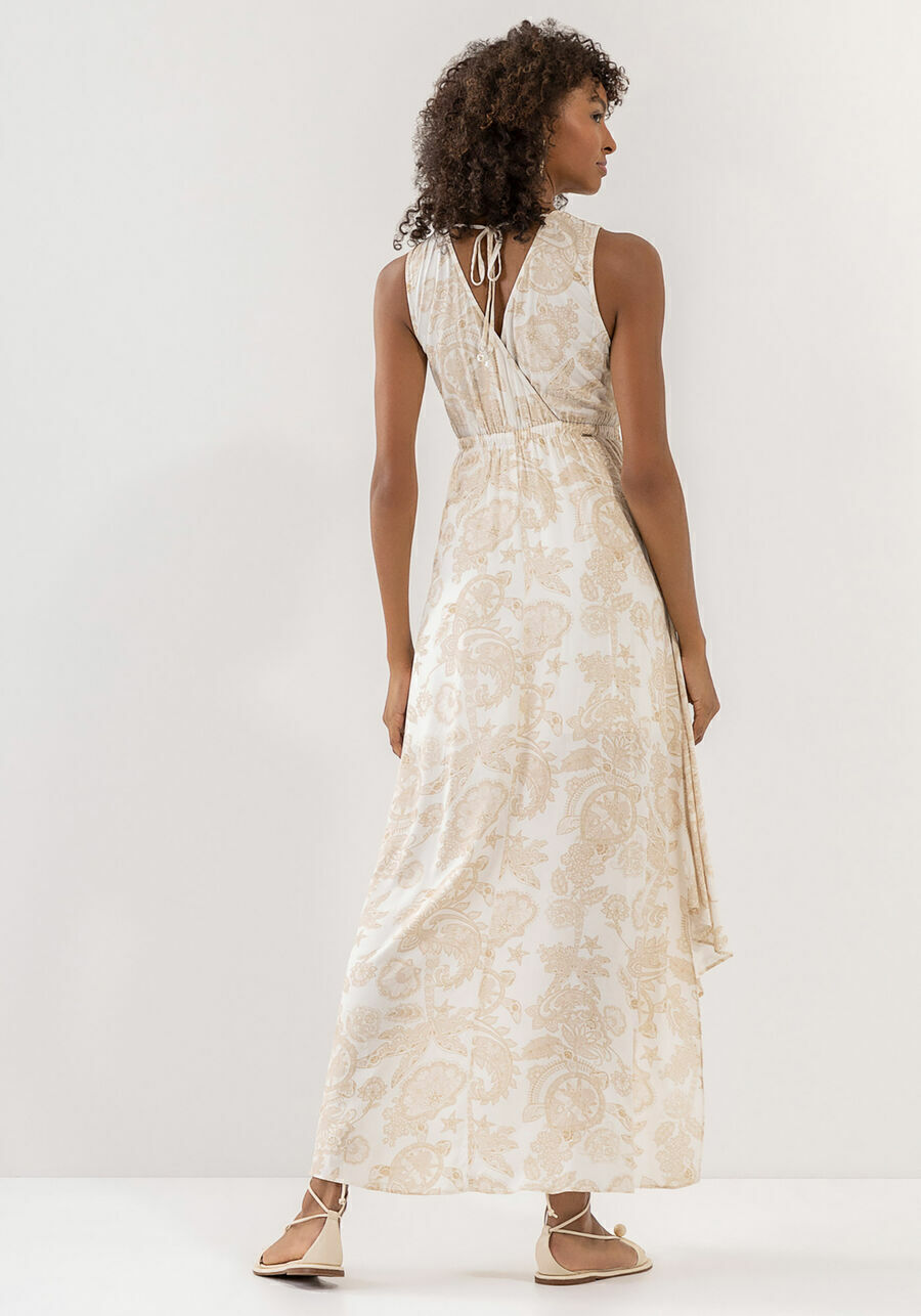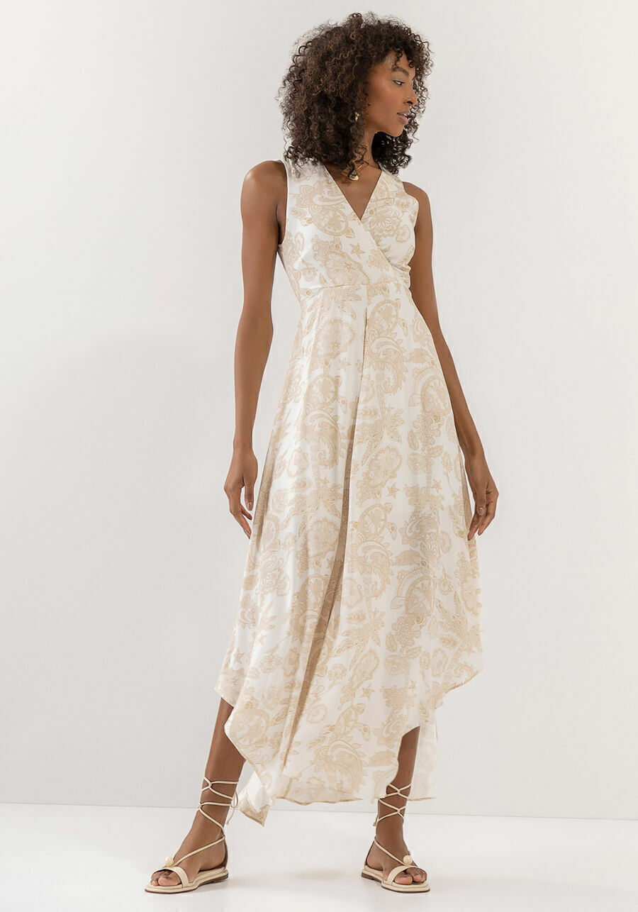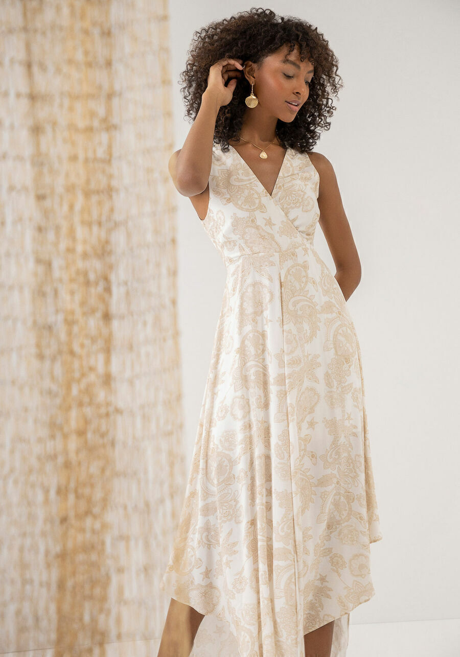 A poesia se entrelaça com a modernidade nesse vestido midi Lez a Lez. Seu caimento fluido revela uma sofisticação única e evidencia a beleza da modelagem com decote transpassado, cintura marcada e barra de pontas. A estampa inspirada nas Filipinas completa sua beleza para um look com sandália de amarração e jaqueta jeans.